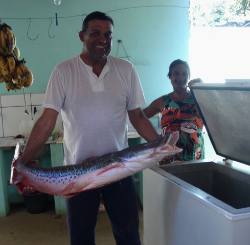 O radiodifusor e comentarista Antonino (Tonão) Neves, da rádio Gorutubana AM, conseguiu uma façanha dentre as inúmeras pescarias que realiza nos finais de semana na margem direita do rio São Francisco, no município de Matias Cardoso. Ex-vereador por Janaúba, Tonão Neves fisgou um surubim de 1,20 metros com 21 quilos. Isso ocorreu há poucos dias no sítio Repouso do Guerreiro, de propriedade de Tonão, onde ele tem costume de fisgar surubim de menor tamanho, além de caranha e piau. Tonão mandou o filho Júnior, que é veterinário, guardar a cabeça do peixe para mostrar aos curiosos.